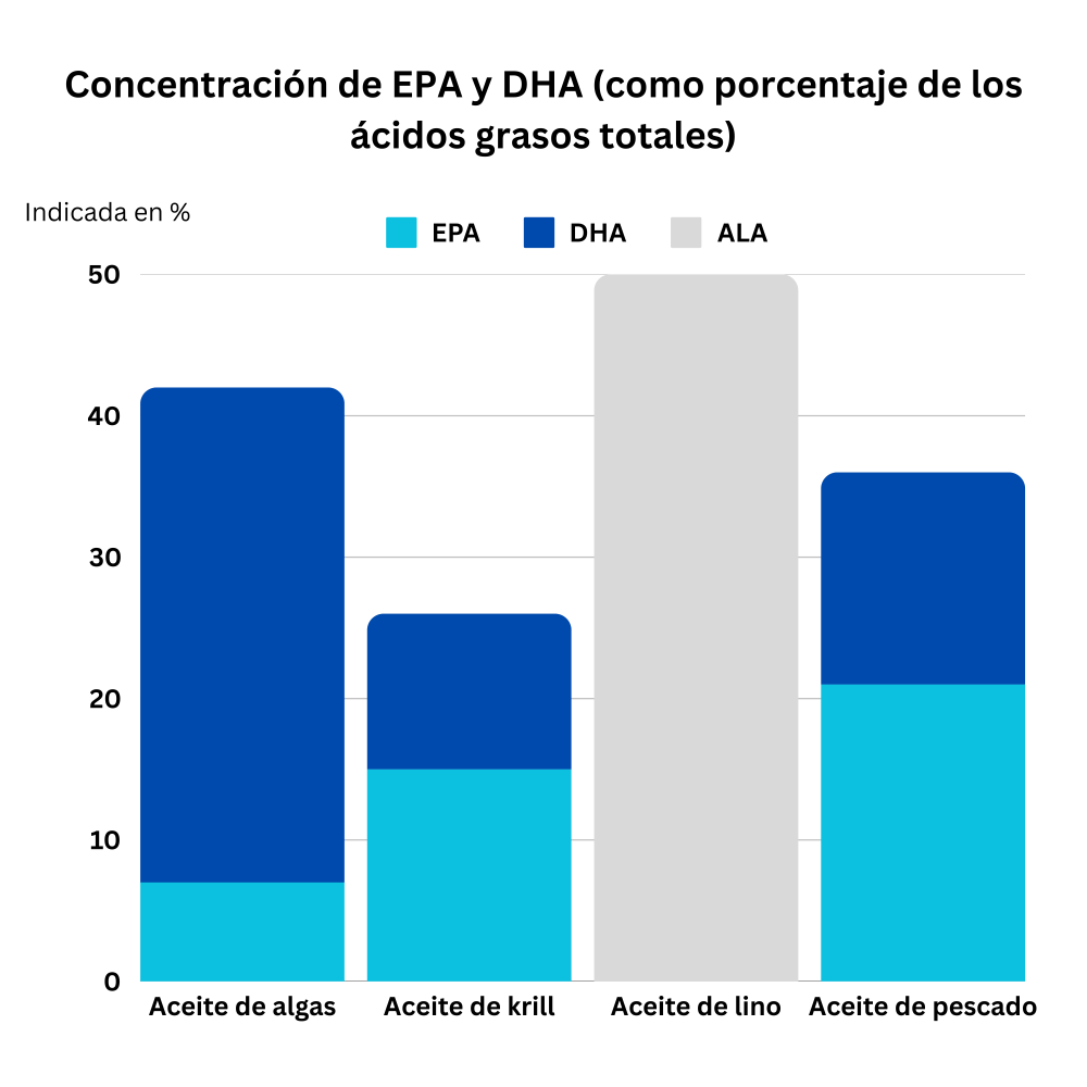 Los ácidos grasos omega-3 son esenciales para la salud mental y el rendimiento; los ácidos grasos de cadena larga DHA y EPA, en particular, ayudan al cerebro favoreciendo la comunicación entre las células nerviosas y mejorando así la concentración y la memoria.¹¹